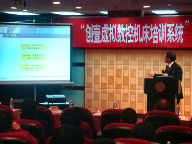 在會(huì)中,作為創(chuàng)壹軟件的領(lǐng)頭羊----林慶平林博士首先給與會(huì)的各位人員就“虛擬現(xiàn)實(shí)技術(shù)在教學(xué)領(lǐng)域中的應(yīng)用優(yōu)勢(shì)及發(fā)展趨勢(shì)”這個(gè)專題做了介紹,并親自詳細(xì)地演示了創(chuàng)壹在教學(xué)系統(tǒng)中的代表作-------“創(chuàng)壹虛擬數(shù)控機(jī)床培訓(xùn)系統(tǒng)”,在林博士的演示過程中,眾多來(lái)賓都聽的如癡如醉,并多次報(bào)以熱烈地掌聲。接下來(lái),該系統(tǒng)的上海第一家使用用戶代表----上海海事大學(xué)附屬職業(yè)技術(shù)學(xué)校尤慶華校長(zhǎng)尤教授也詳細(xì)回顧了該項(xiàng)目在該校的應(yīng)用情況,并總結(jié)出了該系統(tǒng)最關(guān)鍵之處“要真正意義上的培訓(xùn)出對(duì)數(shù)控機(jī)床維修、維護(hù)及故障排除都掌握的人才來(lái),且讓學(xué)校的知識(shí)領(lǐng)先與市場(chǎng)同類產(chǎn)品3-5年時(shí)間,創(chuàng)壹虛擬數(shù)控機(jī)床系統(tǒng)很好地滿足了該要求”,而廈門創(chuàng)壹軟件有限公司也借由該次活動(dòng)推出了相關(guān)的各項(xiàng)營(yíng)銷優(yōu)惠政策,會(huì)上,創(chuàng)壹軟件營(yíng)銷總監(jiān)徐總向來(lái)賓們宣布了相關(guān)的政策,并詳細(xì)地解答了來(lái)賓們提出相關(guān)問題。緊接著,最后的抽獎(jiǎng)活動(dòng)又一次把大會(huì)推向了高潮!
